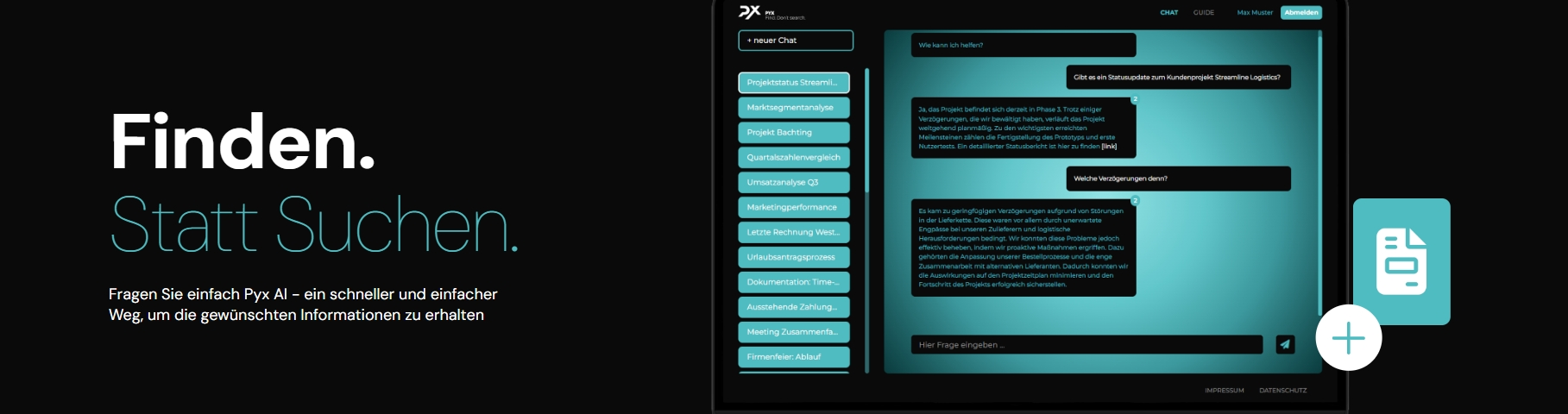 Pyx AI verkürzt mit Hilfe von KI die Suche nach Informationen in unternehmensinternen Dokumenten und Daten auf Sekunden.