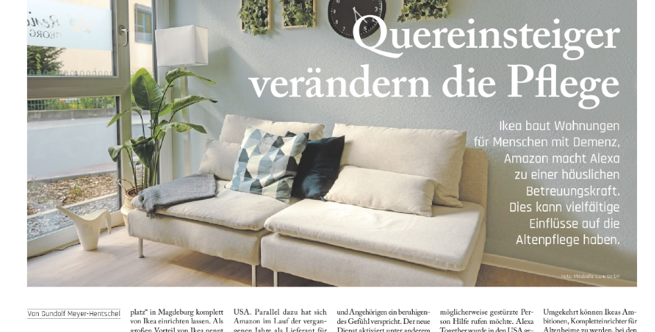 Amazon macht Alexa zu einer häuslichen Betreuungskraft, Ikea baut Wohnungen für demente Menschen. Dies kann vielfältige Einflüsse auf die Altenpflege haben.