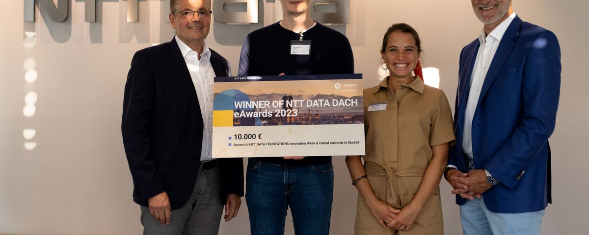 Die NTT DATA eAwards für nachhaltige Innovationen werden 2023 zum 22. Mal ausgetragen – zum zweiten Mal mit einem Regionalwettbewerb für den DACH-Raum. Mehr als 60 deutsche, österreichische und schweizerische Start-ups bewarben sich. Ein Evaluationsteam aus Branchenexperten und Technologen von NTT DATA DACH wählte fünf Start-ups für das regionale Finale aus. Im „Ens – The Space for Creators“ am Hauptsitz von NTT DATA Deutschland in München präsentierten die Finalteilnehmenden ihre Lösungen und stellten sich den Fragen der interdisziplinär besetzten Jury vor einem fachkundigen Publikum.