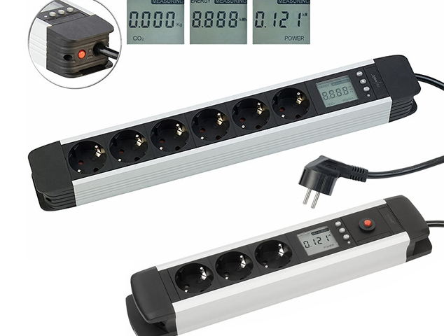 revolt 6-fach-Alu-Steckdosenleiste mit Stromverbrauchszähler und LCD-Display