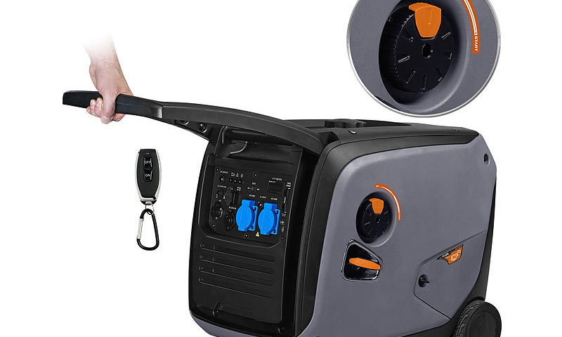 Einfacher Betrieb: Benzin und Motoröl in den Generator einfüllen und schon kann es losgehen! Den Generator startet man klassisch per Zugstarter, ganz bequem per Elektro-Starter oder Fernbedienung.