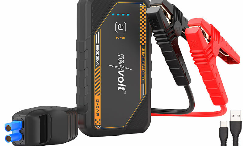 Sicher starten – auch bei leerem Akku: Die USB-Powerbank mit Kfz-Starthilfe von revolt bringt dank 800 Ampere Peak-Strom leere Fahrzeugbatterien im Handumdrehen wieder in Schwung. Ideal für Autos, Motorräder und Boote mit 12-Volt-Bordnetz – so bleibt man nie wieder liegen.