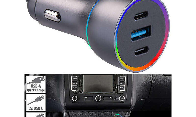 revolt 2er-Set Kfz-USB-Ladegeräte 12/24 V mit insg. 135 W, 2x USB-C, 1x USB-A