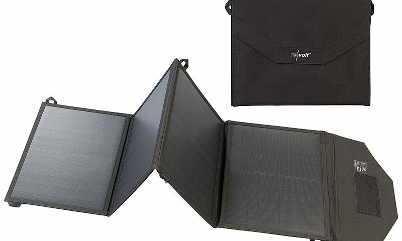 Leicht zu transportieren: Das Panel besteht aus 4 Solarzellen, die auf der Innenseite einer Tasche