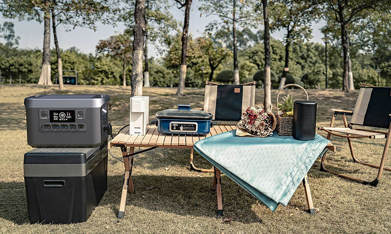 Powerstation anschließen. Ist diese vollständig geladen, wird der Strom an die 230-Volt-Geräte