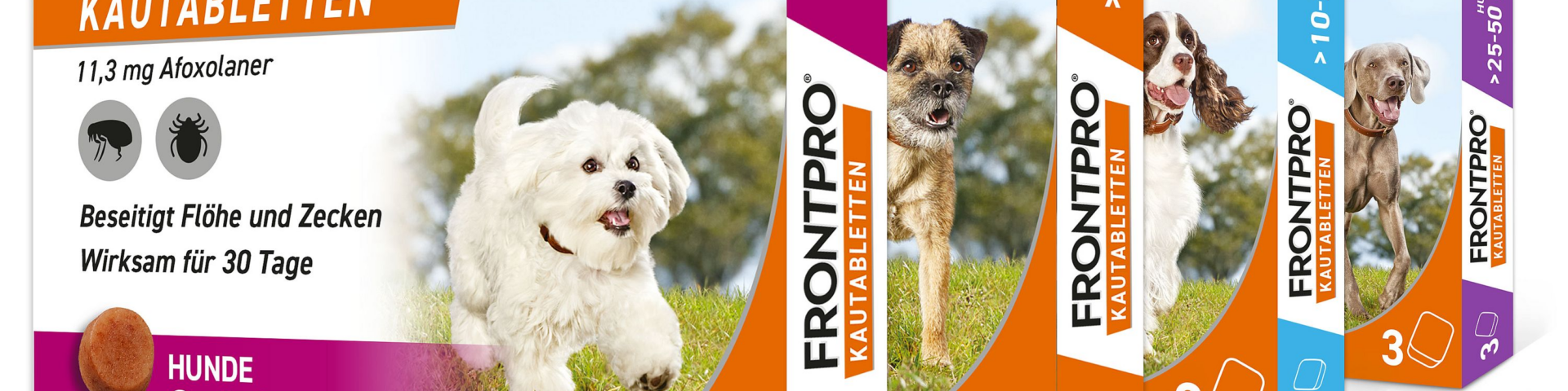 Aus dem Hause der bewährten FRONTLINE®-Produkte gibt es jetzt eine innovative Neuheit zur Parasitenprävention: FRONTPRO® ist die erste zugelassene rezeptfreie Kautablette zur effektiven Bekämpfung von Zecken und Flöhen bei Hunden.