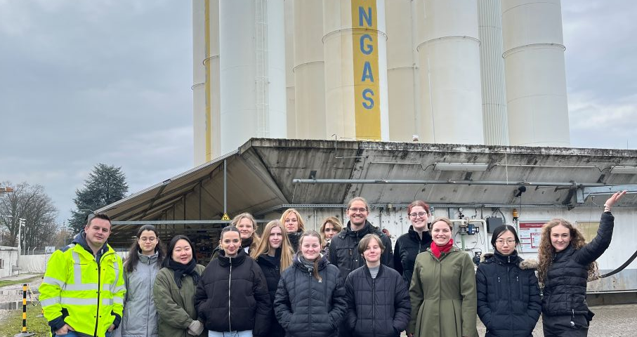 Nach einer Unternehmensvorstellung stand insbesondere der Austausch zu Karrierewegen, akademischen Entscheidungen und dem Übergang von der Hochschule in die Wirtschaft im Mittelpunkt. Anschließend erhielten die Studentinnen fachliche Einblicke in die Energieträger Propan und Erdgas. Es wurden Grundlagen, Anwendungsfelder sowie sicherheitsrelevante Aspekte erläutert. Eine Führung über das Betriebsgelände – einschließlich Gastank, Füllstelle, Umschlagplatz für Tanklastwagen und Flaschenlager – rundete diesen Programmpunkt ab.