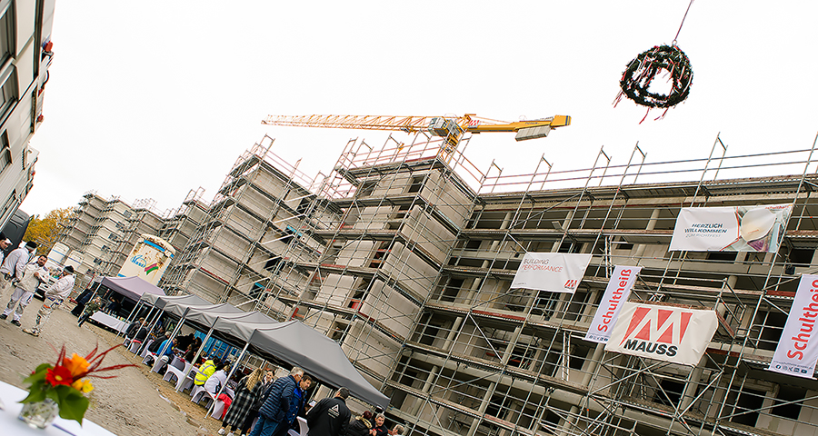 Nürnberg, 04. November 2021. Zwischen Spatenstich und Einzug wird das schönste Ritual beim Bau eines neuen Hauses zelebriert: das Richtfest. Nach dem Baubeginn im Januar 2021 wurde nun mit der planmäßig erfolgten Rohbaufertigstellung das Richtfest für den Neubau der Schultheiß Projektentwicklung AG in der Wörnitzstraße 64 in Nürnberg begangen und somit nach alter Tradition die Leistung der Bauleute gewürdigt. Die Fertigstellung und Vermietung der neuen Wohnungen ist für das Frühjahr 2022 geplant. Verkauft wurde das Projekt im Dezember 2020 an die Allianz Real Estate, einem der weltweit größten Immobilien-Investmentmanager.