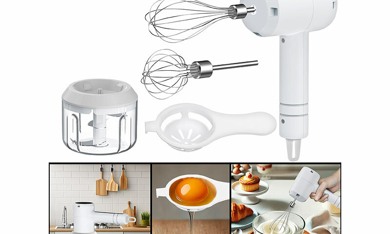 Rosenstein & Söhne 3in1-Akku-Handmixer, Zerkleinerer und Schneebesen