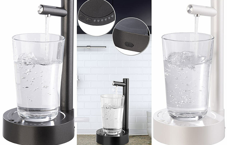 Die Akku-Trinkwasser-Pumpe von Rosenstein & Söhne von ermöglicht es, jederzeit und überall Trinkwasser zu zapfen. Mit dem 7-stufigen Wasserauslauf lässt sich schnell und einfach Wasser in ein Glas füllen, das auf dem Becherhalter steht.