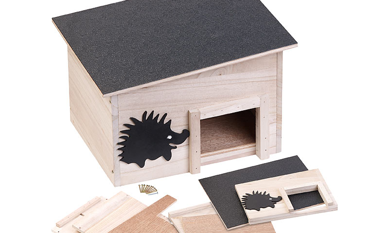 Bastelspaß für Groß und Klein: Das Igelhaus wird als kompletter Bausatz geliefert. Dank passend vorgefertigter Teile baut man das Häuschen für den Garten ruckzuck selbst zusammen.