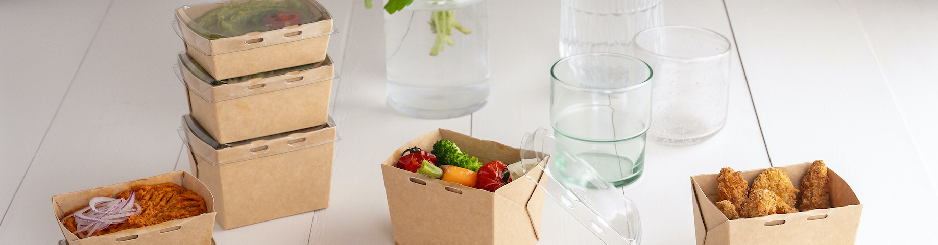 Sowohl die Schale als auch der Deckel werden in Europa hergestellt und sind vollständig recycelbar. Die Kartonböden kommen aus dem Sabert-Werk in Kimbolton, Großbritannien. Der einzigartige Deckel, der mit allen drei Schalenformaten kompatibel ist, wird im Sabert-Werk in Nivelles, Belgien, produziert.