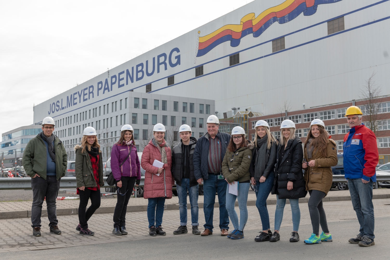 Die bereits 1795 gegründete Meyer Werft und GF Piping Systems verbindet eine lange Partnerschaft. Die belastbaren und langlebigen Rohrleitungssysteme des Unternehmens für die (Trink-)Wasserversorgung kommen auch regelmäßig bei der Schiffsproduktion in Papenburg zum Einsatz. Daher bot es sich an, den Auszubildenden des Rohrleitungsspezialisten im Rahmen einer Besichtigung der Produktionsstätte zu zeigen, dass die eigenen Produkte auch in weniger alltäglichen Sektoren wie der maritimen Industrie zum Einsatz kommen. Dazu machten sich sechs Azubis zusammen mit ihren zwei Ausbilderinnen auf den Weg zur Meyer Werft, wo derzeit Kreuzfahrtschiffe produziert und früher auch Fähren, Viehtransporte, Gastanker sowie Forschungsschiffe gebaut wurden. Dort nahmen sie, begleitet von zwei Marktsegmentmanagern der Sparte Schiffbau bei GFPSDE, an der Führung durch die 45 Hektar große Anlage teil.