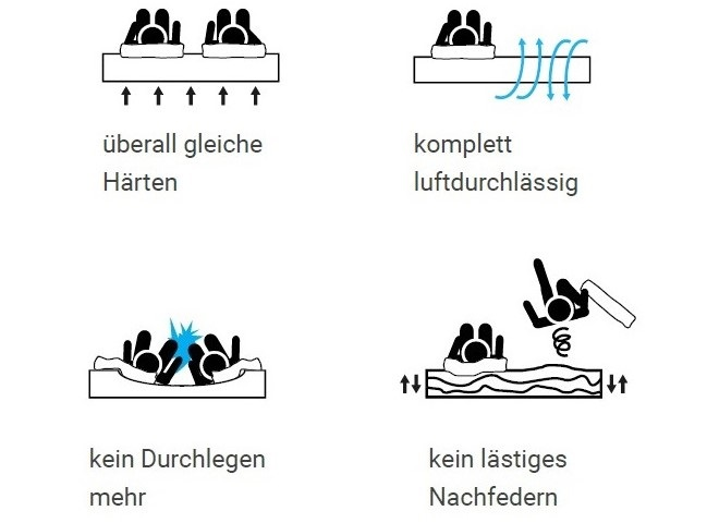 1.Keine zwei separaten Lattenroste, da die unterschiedlichen Härten sowie die harte Mittelzone zwischen zwei Lattenrosten (z.B. 200 x 80 cm oder 200 x 70 cm) stören.