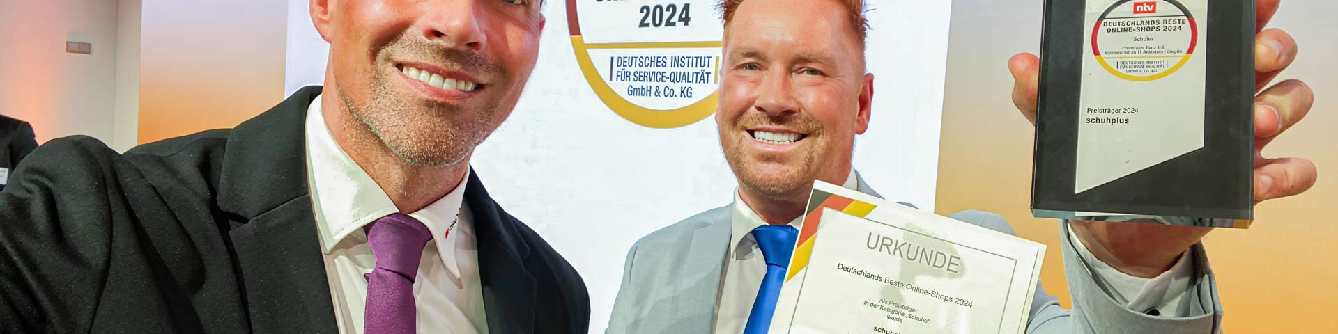 (Berlin/Dörverden/Saterland) (28.08.2024) – Der auf Schuhe in Übergrößen spezialisierte Fachhändler schuhplus ist am Dienstag in Berlin mit dem ntv-Award „Deutschlands Beste Online-Shops 2024“ für herausragende Leistungen ausgezeichnet worden. Damit gehört das Familienunternehmen aus Niederachsen zu den führenden Webshops des Landes im Segment Schuhe. Der Nachrichtensender stellte die herausragende Nischenausrichtung ebenso wie den exzellenten Kundenservice heraus. Der Preis wird zum zehnten Mal von ntv gemeinsam mit dem Deutschen Institut für Service-Qualität (DISQ) vergeben. Grundlage für die Auszeichnung ist eine umfangreiche, repräsentative Befragung von deutschen Konsumenten. Rund 80.000 Kundenmeinungen wurden eingeholt und über 950 Anbieter von den Verbrauchern bewertet.