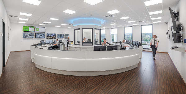 Vor Kurzem hat die SCUTUM Group die Bunk Sicherheitsdienste GmbH und deren Firmenschwester Wach- und Sicherheits-Compagnie GmbH (WSC) gekauft. „Damit gewinnen wir als europaweit führender Sicherheitsdienstleister vordergründig eine moderne und erfolgreiche Notruf- und Serviceleitstelle im deutschen Raum dazu, die über alle Zulassungen verfügt.“, so Steffen Bluhm, CEO der SCUTUM Group Germany. Die Notruf-Serviceleitstelle ist das Herzstück des Unternehmens und wurde in der Firmenzentrale in Schorndorf im Jahr 2015 für zwei Millionen Euro eingerichtet. Von da aus haben die Mitarbeiter rund 4.500 Objekte rund um die Uhr an 7 Tagen die Woche im Blick. Monatlich werden hier durchschnittlich 25.000 Telefonate und 500.000 Störungsmeldungen wie Einbruch, Brand, Überfall, Notruf, IT- und Klimaanlagenstörung erfasst, ausgewertet und bearbeitet. „Wer hier aufgeschaltet ist, erhält Zuspruch, Trost und klare Anweisungen für korrektes Verhalten, bis die notwendige Hilfe eintrifft.“, sagt Geschäftsführer Tobias Bunk. Das installierte Sicherheitssystem wurde auf einem europaweit verbundenen Telekommunikationsnetzwerk aufgebaut, das eine standortunabhängige ständige Erreichbarkeit ermöglicht.
