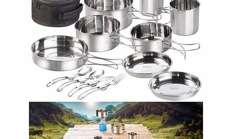 Das vielseitige Camping-Kochgeschirr-Set von Semptec Urban Survival Technology eignet sich ideal