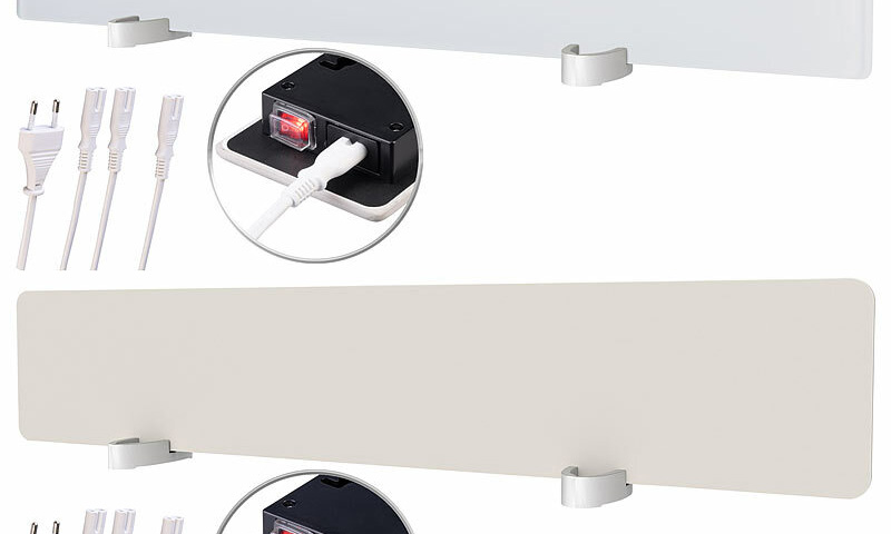 – Infrarot-Heizung inklusive Anschlusskabel, Verbindungskabel für weiteres Gerät, Standfüße, Montagematerial, Bohrschablone und deutscher Anleitung