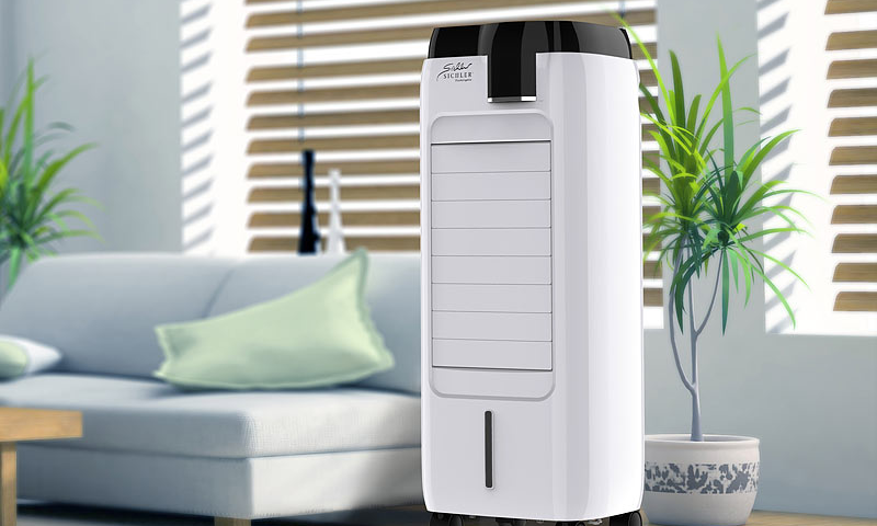 Abhilfe bei sommerlicher Hitze und trockener Luft: Denn der Raumluft-Kühler von Sichler Haushaltsgeräte mit Wabenfilter erzeugt eine angenehme Verdunstungskälte. Und das bei gleichzeitig angenehmer Luftfeuchtigkeit! Das Wasser im Tank kühlt er zudem selbstständig auf frische 8 °C.