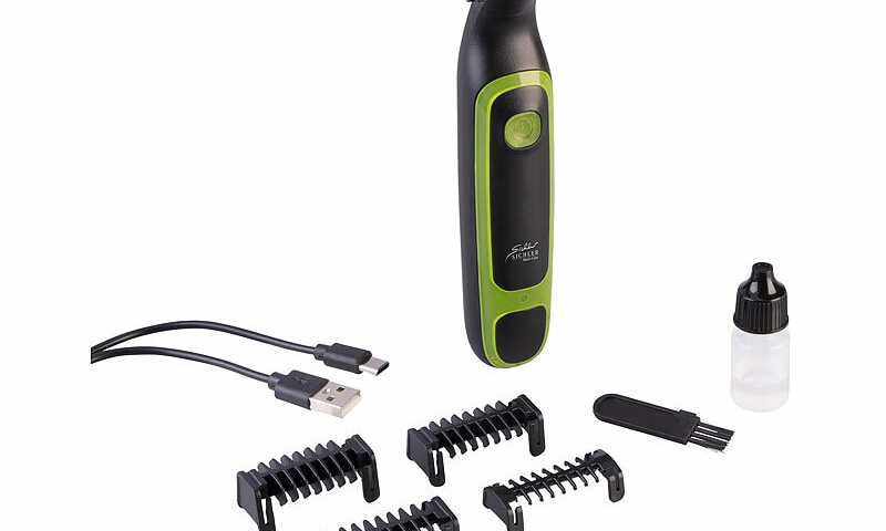 – Akku-Rasierer und -Trimmer mit 4 Kammaufsätzen