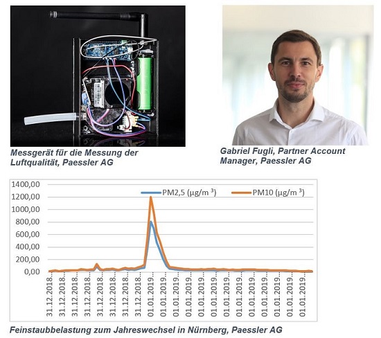 Nürnberg, 17. Januar 2019 – 4.500 Tonnen Feinstaub (PM10) – laut Umweltbundesamt wird in Deutschland diese Menge nur durch Feuerwerk zum Jahreswechsel in die Luft gejagt. Dieser Wert entspreche rund 15,5 Prozent der jährlichen Feinstaubbelastung durch den Straßenverkehr. Der Netzwerk-Monitoring Experte Paessler wollte es genau wissen: Zusammen mit Sigfox hat der Hersteller spezielle LPWAN-Feinstaub-Sensoren entwickelt. Mit diesen wurde in der Silvesternacht die Luftqualität in Nürnberg sowie in Lauf an der Pegnitz gemessen. Das Ergebnis: Die Werte überschritten die Messgrenze der eingesetzten Sensoren.