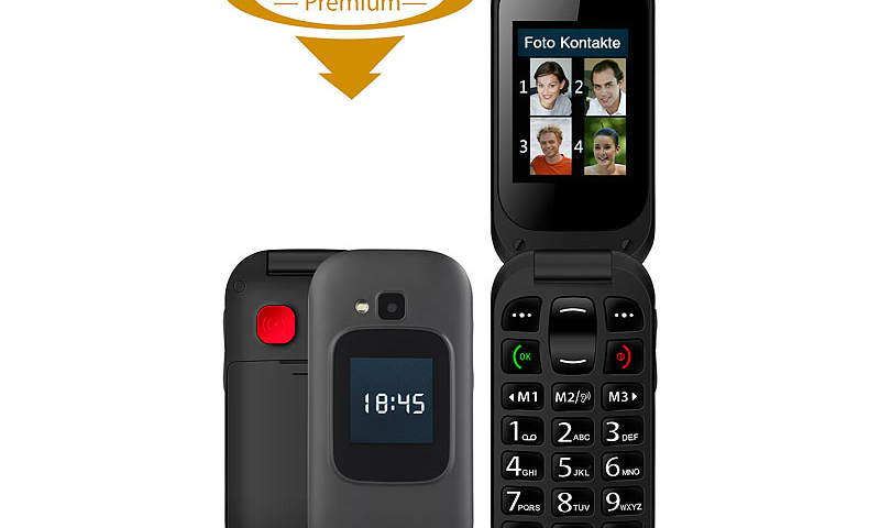 – Klapp-Handy inklusive Akku, Ladestation, Netzteil und deutscher Anleitung