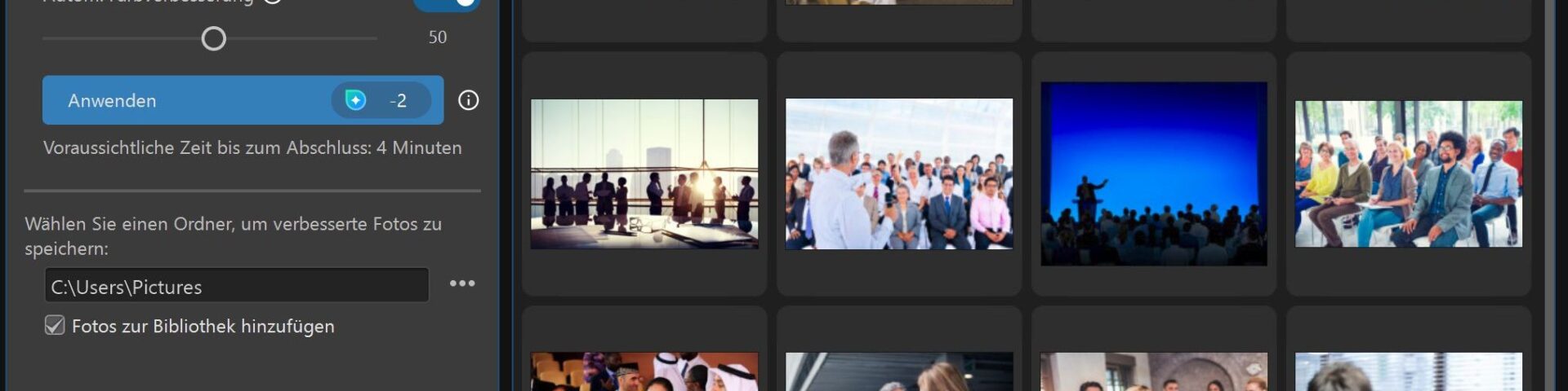 So werden Belichtung, helle und dunkle Bereiche, Farben und Sättigung bei allen Bildern im jeweils geladenen Ordner mit nur einem Klick bei jedem einzelnen Bild verbessert. Die Software analysiert jedes Foto und optimiert es individuell nach seinen spezifischen Eigenschaften. Das sorgt für schnelle, konsistente Ergebnisse und lässt gleichzeitig Raum für weitere Anpassungen. Die Bearbeitung ganzer Bildsammlungen oder Serien wird dadurch effizienter und präziser.