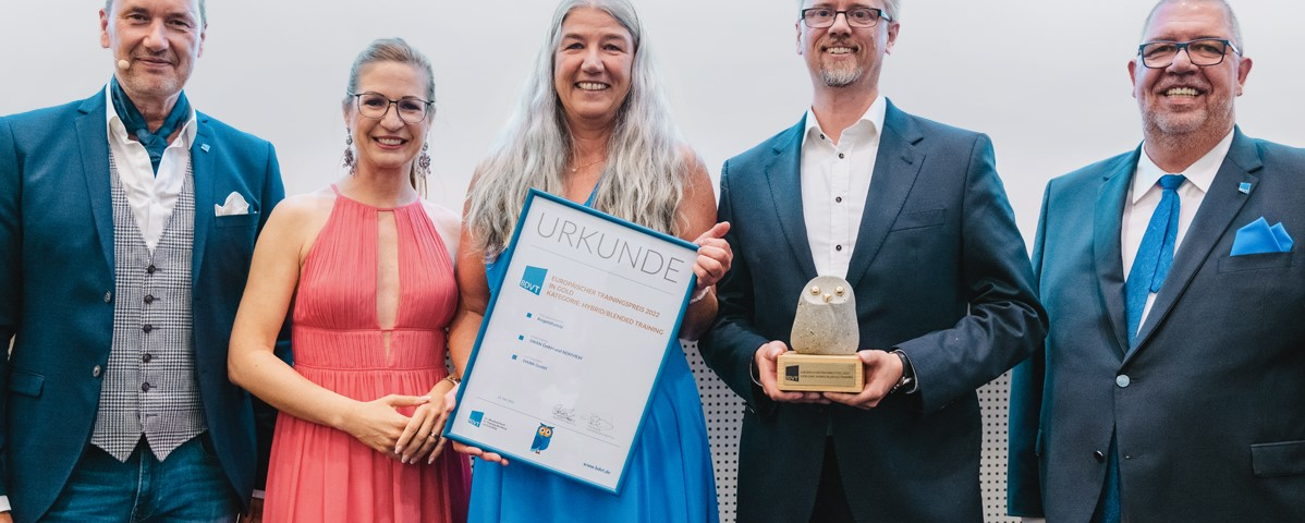 Der Berufsverband für Training, Beratung und Coaching (BDVT e.V.) verleiht bereits seit 1992 den „Europäischen Trainingspreis“. Er dient als Wegweiser und Trendgeber für Methodik und Wirksamkeit in der Weiterbildung von New Work bis New Learning. „Wir freuen uns sehr über einen großartigen ersten Preis für ein außergewöhnliches Training“, so Manuela König enthusiastisch. „Dieses Projekt war eine große Herausforderung für mich, an der ich wieder einmal ein Stückchen wachsen durfte.“