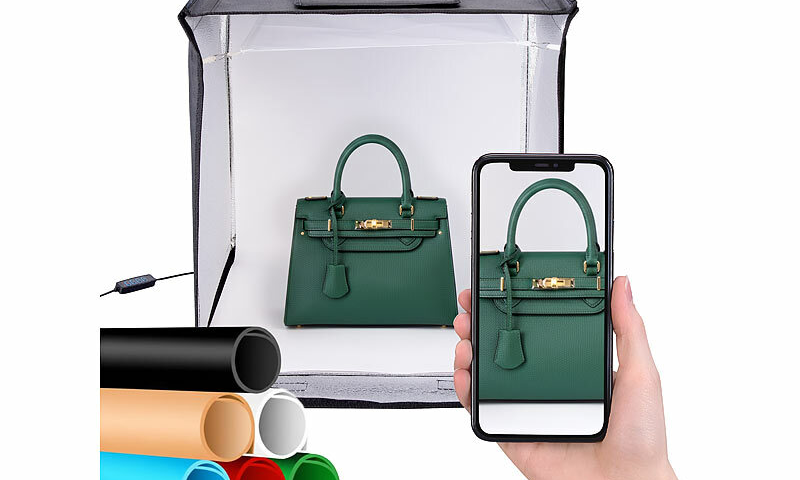 – Fotobox inklusive 6 PVC-Hintergründen, Stofftuch, Transporttasche und deutscher Anleitung