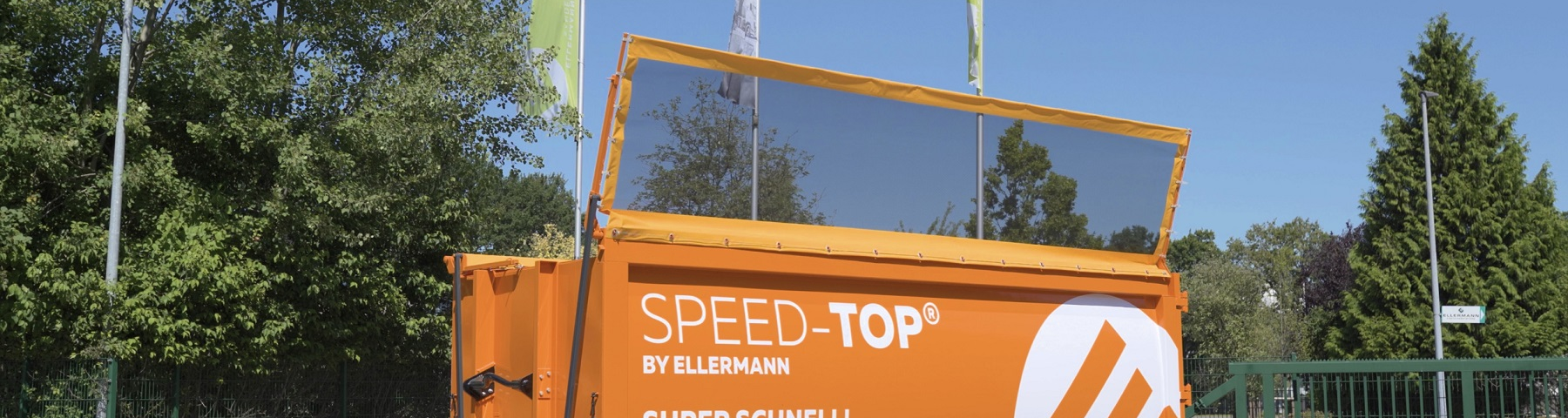 Das System ergänzt das Abdeck-/Ladungssicherungsprogramm des Herstellers. Ob als zweiteiliges Stahl-Schiebedach, Stahldeckel mit doppelt wirkender Hydraulikpumpe, Stahldecke mit Zahnstangengewinde oder Rollsystem, hydraulische oder elektrische Variante mit Fernbedienung, Ellermann Ganderkesee bietet für die unterschiedlichen Einsätze, ob für den Fernverkehr mit täglich wenigen bzw. nur einem Behälterwechsel oder für den lokalen Transport mit mehreren Ladevorgängen täglich, wirtschaftliche Systeme zur Abdeckung von Containern auf dem Motorwagen und dem Anhänger gleichermaßen an. „Es gibt nicht das eine Abdecksystem passend für alle Containereinsätze,“ erklärt Geschäftsführer Thomas Ellermann und ergänzt: „Wir haben deshalb diverse System im Programm, um allen Anforderungen begegnen zu können. Speed-Top ist aber eine herausragende Ergänzung. Container abdecken war noch nie so effizient, wartungsarm und sicher wie mit Speed-Top, der Zukunft der Container-Abdecksysteme.“ Zum Video hier: