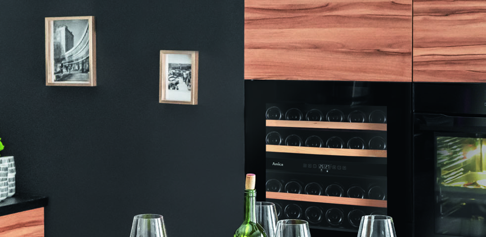 Zeitlos Schwarz und im grifflosen Design der X-type-Serie sind die neuen Weinkühlschränke von Amica ein wertiges Accessoire für Weinliebhaber. Ob als freistehendes Standgerät im Esszimmer, Partykeller oder in der Wohnküche, als Einbaugerät, das mit einem ebenfalls schwarzen Backofen zu einer Einheit verschmilzt, als Unterbaugerät für normal hohe oder höhere Arbeitsplatten sowie als schlanke Weinschublade oder für schmale Nischen, für die der Küchenbauer keine Verwendung hat: Die Geräte sind eine perfekte Lösung für Haushalte, in denen gerne Wein getrunken wird. Allen Modellen gemein sind erstklassige Ausstattungsmerkmale, die eine lange Lagerzeit von Weinen ermöglichen. So schützen Türen mit Rauchglas vor zu viel UV-Einstrahlung, hochwertige Böden aus Buchenholz verhindern Erschütterungen, die den Reifeprozess eines Weins stören könnten. Die Temperatur in den bis zu zwei Temperaturzonen ist elektronisch über ein Display präzise einstell- und kontrollierbar. Ein spezielles Luftfeuchtigkeitssystem sorgt für optimale Lagerbedingungen für Weine mit Naturkorken. Es verhindert, dass die Korken durch trockene Kälte schrumpfen und Luft eindringt, die den Wein oxidieren lassen. Zusätzlich warnt der Tür-Offen-Alarm bei zu großen Temperaturschwankungen im Gerät.