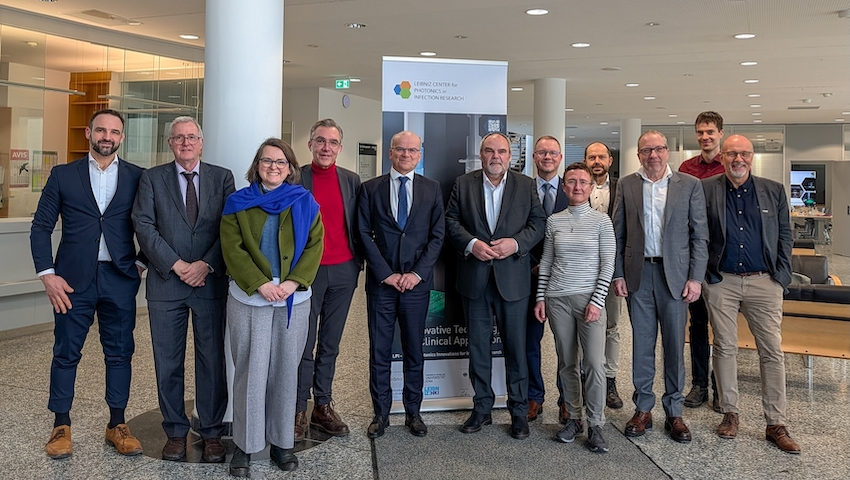 Mit dem Leibniz-Zentrum für Photonik in der Infektionsforschung (LPI) entsteht in Jena ein Translationszentrum, um lichtbasierte Innovationen aus der Forschung in die medizinische Anwendung zu überführen. Eine gemeinsame Delegation des Bundesministeriums für Forschung, Technologie und Raumfahrt (BMFTR) sowie des Thüringer Ministeriums für Bildung, Wissenschaft und Kultur (TMBWK), unter Leitung der Staatssekretäre Dr. Rolf-Dieter Jungk und Prof. Dr. Steffen Teichert, besuchte das LPI am 16. Februar 2026 in Jena am Standort des Leibniz-Instituts für Photonische Technologie. Neben den neuesten Entwicklungen und Strategien des LPI beschäftigte sich das Treffen mit den Perspektiven des LPI und der Hightech Agenda Deutschland.