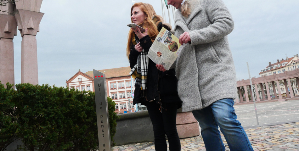 Corona-bedingt sind Stadtführungen aktuell nicht möglich. Mit einem neuen Angebot stellt die Stadt Pirmasens eine alternative Lösung vor, die einem Spaziergang nicht nur in Pandemiezeiten zu einem gewissen Etwas verhilft. So kann man jetzt mit dem Smartphone in der Hand bei einer kleinen Tour durch das Zentrum der südwestpfälzischen Stadt spannende Informationen über die rund 260-jährige Stadtgeschichte und dabei auch etwas „Bärmesensisch“ lernen. Möglich wird dieser einzigartige akustische Stadtrundgang durch einen Audio-Guide, der an insgesamt 16 Stelen via QR-Code kurzweilige Geschichte mit passendem Inhalt zum jeweiligen Standort präsentiert; die Erklärung eines typischen Begriffs in der lokalen Mundart schließt sich darauf an. Der hörbare Stadtrundgang ist das Ergebnis des Projekts namens „Auf den Punkt gebracht“, das vom Jugendforum Pirmasens umgesetzt und dem Historischen Verein Pirmasens e. V. getragen wurde. Im Rahmen des Bundesprogramms „Demokratie leben!“ hat das Bundesministerium für Familie, Senioren, Frauen und Jugend das Projekt gefördert.