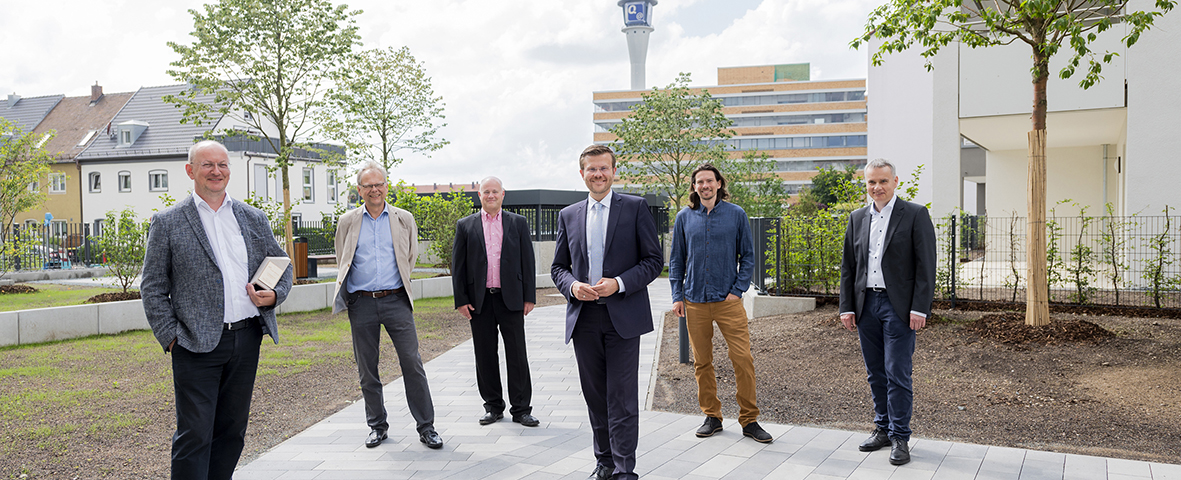Gemeinsam mit Nürnbergs Oberbürgermeister Marcus König übergibt das Fürther Familienunternehmen GS Schenk weitere 82 Mietwohnungen an die Joseph-Stiftung aus Bamberg. Sie sind Teil von insgesamt über 360 Wohnungen, die der Bauträger GS Wohnen seit 2017 im Nürnberger Stadtteil Eberhardshof realisiert hat.