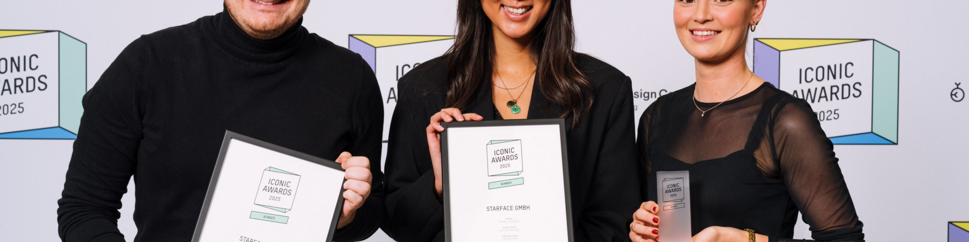 Karlsruhe, 28. Oktober 2025. STARFACE wurde mit dem ICONIC AWARD 2025 in der Kategorie INTERIOR Workplace ausgezeichnet. Der international renommierte Architektur- und Designpreis des German Design Council würdigt das moderne Workplace-Konzept am STARFACE Hauptsitz in Karlsruhe, das in enger Zusammenarbeit mit der feco-feederle GmbH entworfen und umgesetzt wurde. Die Preisverleihung fand am 7. Oktober 2025 in der BMW Welt München statt.