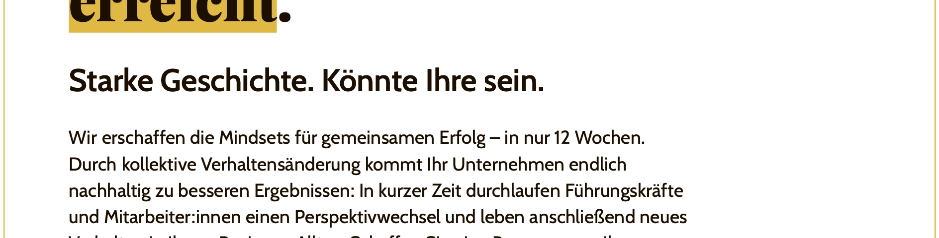 Und dann lauten die Geschichten zum Beispiel so: Die Ziele wurden mit neuer Leichtigkeit erreicht. Vorstand, Führungskräfte und Mitarbeiter:innen sind ein wirksames Team. Die Neuausrichtung gelang – endlich.
