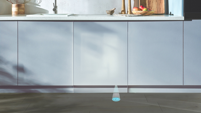 Vollintegrierte Modelle verzichten bewusst auf energieintensive Displaytechnologie – ein weiterer wichtiger Beitrag zur Energieeffizienz. Dennoch bleiben Nutzer stets informiert: Die Geräte von Amica bieten mit der TimeFloor-Funktion eine praktische Statusanzeige, die die Restlaufzeit des aktiven Spülprogramms oder das Programmende energiesparend auf den Fußboden projiziert. Auch die Modelle mit BlueDot-Funktion nutzen nur eine sparsame blaue LED am Boden, um anzuzeigen, wann der Spülvorgang beendet ist.