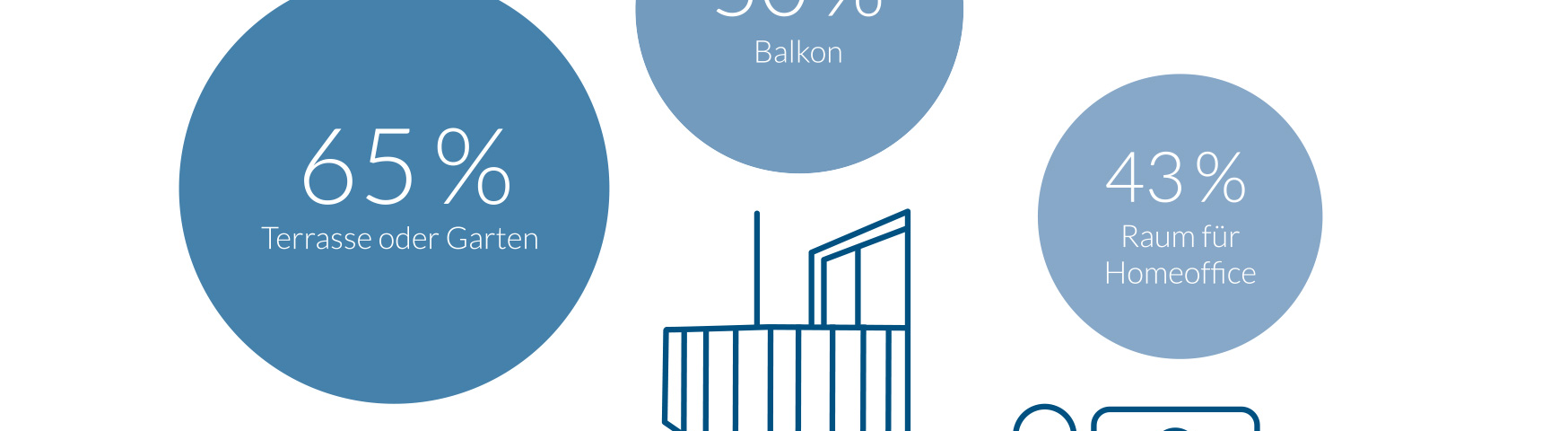 Aber auch der Balkon hat einen höheren Stellenwert als noch vor Corona: Für jeden zweiten der Bundesbürger (50 Prozent) ist er bedeutsamer geworden, um sich auch zu Hause an der frischen Luft aufhalten zu können. Auf einen separaten Raum für das Homeoffice legen aufgrund der Corona-Situation 43 Prozent der Befragten mehr Wert – insbesondere diejenigen mit Kindern im Haushalt (53 Prozent).