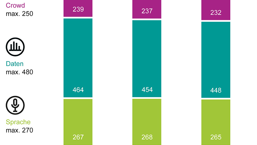 Bereits zum fünften Mal in Folge erzielt die Swisscom den Gesamtsieg in der Schweiz. Der Anbieter erreicht 970 von 1.000 möglichen Punkten und damit die Note „überragend“, büßt allerdings im Vorjahresvergleich einige Punkte ein. Swisscom liegt in den Testdisziplinen Daten und Crowd an der Spitze und erzielt Top-Leistungen bei der 5G-Abdeckung. Sunrise folgt mit 959 Punkten und erhält ebenfalls die Note „überragend“, verliert allerdings ebenfalls einige Punkte. In der Sprachdisziplin übernimmt der Anbieter die Führung vor Swisscom; auch die Leistungen in den anderen Testkategorien sowie bei der 5G-Abdeckung sind überzeugend. Salt zeigt im Vorjahresvergleich eine große Verbesserung und verringert den Abstand zum Wettbewerb. Mit 945 Punkten erhält der Anbieter die Note „sehr gut“. Der Fortschritt bei der 5G-Abdeckung ist auch bei diesem Anbieter deutlich.