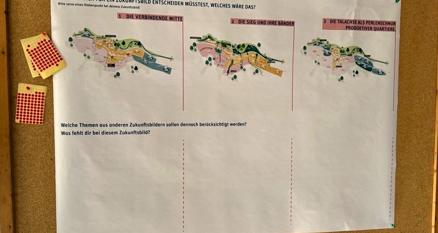 Im Mittelpunkt des Workshops standen drei Zukunftsbilder, die als Orientierungsrahmen für die kommenden Planungsschritte dienen. Sie zeigen unterschiedliche Entwicklungspfade auf, die im weiteren Prozess vertieft, kombiniert und konkretisiert werden können.