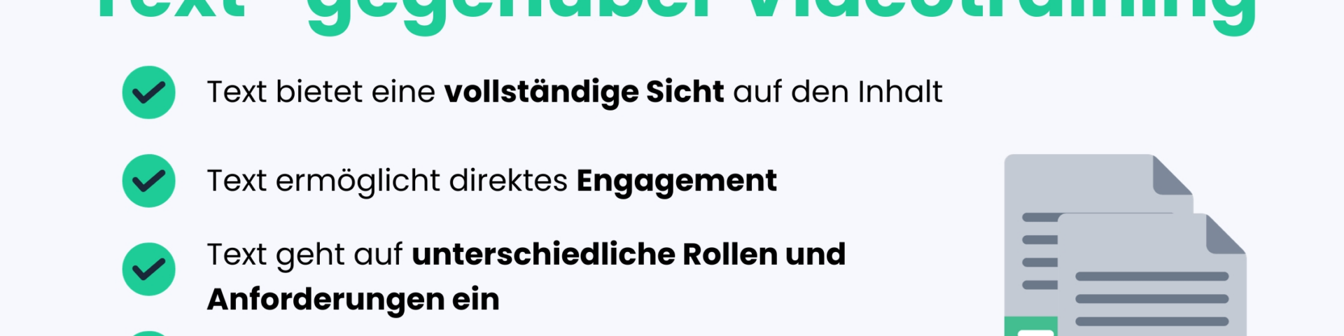 Videos werden immer beliebter – aber sind sie auch effektiver? Was vielleicht in der Freizeit gilt, lässt sich auf Cybersecurity Awareness Training nicht eins zu eins übertragen. Das Ziel von Cybersecurity Training ist es, wichtiges Wissen und Fähigkeiten zu vermitteln, um dauerhaft die Einstellungen und Verhaltensweisen der Mitarbeiter zu ändern. Wenn es um ein derart intensives Training geht, werden die Vorteile textbasierter Inhalte deutlich.