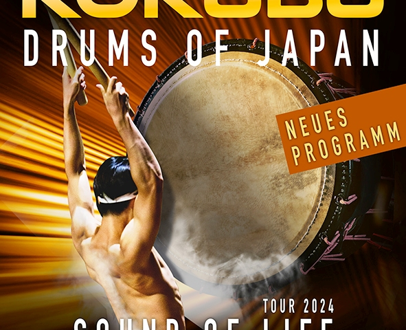 KOKUBU – eine der größten Trommelshows der Welt kommt 2024 nach Deutschland und nimmt das Publikum mit auf eine magische Japan-Reise zwischen artistischem Trommelsturm und zarten Bambusflötentönen. Die umjubelt gefeierte japanische Trommelshow KOKUBU begeistert bei ihrer neuen Show „SOUND OF LIFE“ mit furiosen Rhythmen und kraftvoller Athletik.