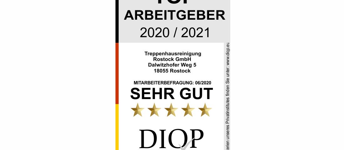 Als erstes Unternehmen aus Rostock hat es die Treppenhausreinigung Rostock GmbH geschafft und die begehrte Auszeichnung als Top Arbeitgeber vom DIQP (Deutsches Institut für Qualitätsstandards und -prüfung e.V.) aus Berlin erhalten.