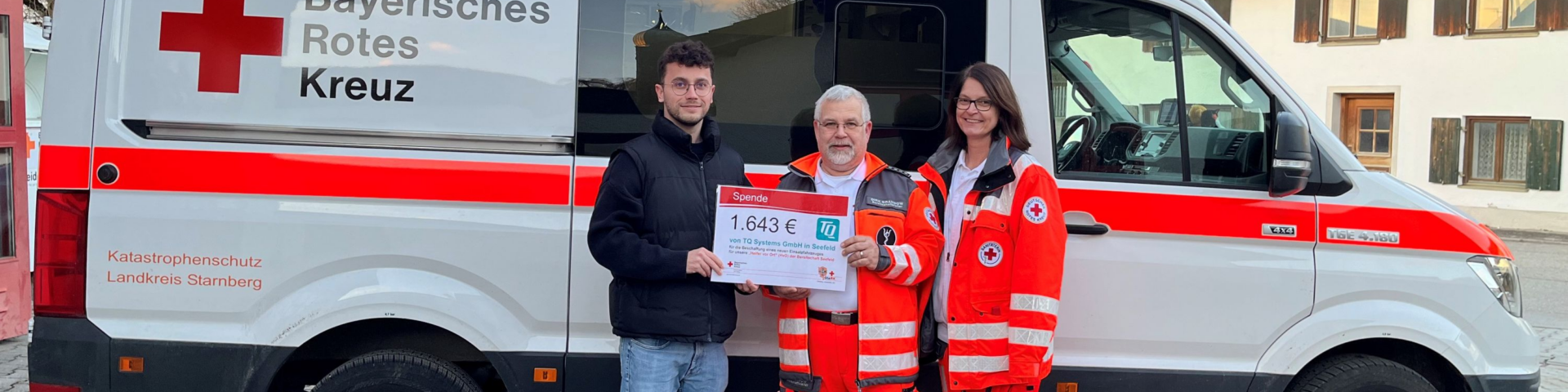 Seefeld, 15. Februar 2024: Auch 2023 führte die TQ-Systems GmbH wieder ihre jährliche Weihnachtstombola am Firmenhauptsitz in Gut Delling durch, an der sich die Mitarbeitenden mittels eines Loskaufs beteiligen konnten. Die eingenommene Summe in Höhe von 1.643 Euro spendet der Technologiedienstleister in diesem Jahr an die Seefelder BRK Bereitschaft „Helfer vor Ort (HvO)“.