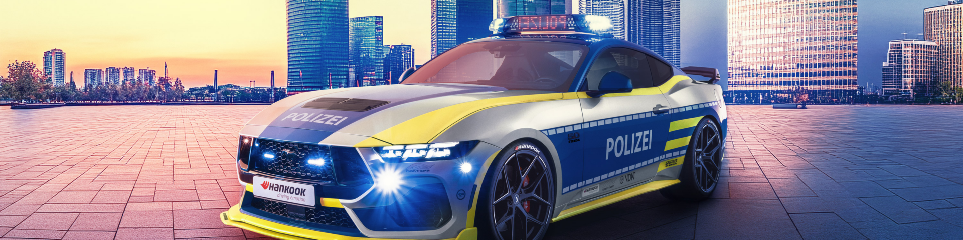 Im unverwechselbaren Polizei-Look und mit einem fahrdynamisch wie sicherheits-technisch konsequent abgestimmten Tuning-Paket von FIEGEPERFORMANCE präsentiert TUNE IT! SAFE! in diesem Jahr einen V8-Sportwagen. Das Basisfahrzeug dazu haben die Ford-Werke mit dem Mustang GT Fastback zur Verfügung gestellt. Damit startet die unter der Schirmherrschaft des Bundesministers für Verkehr stehende Initiative bereits in das 21. Kampagnenjahr. Seit Kampagnen-Beginn 2005 ist Hankook als Hauptsponsor mit an dabei. „Wir sind stolz, seit dem ersten Tag Teil von TUNE IT! SAFE! zu sein. Der STEEDA Q500 Ford Mustang zeigt, wie emotional sich ein Fahrzeug im Rahmen der Regeln individualisieren lässt – mit Hankook UHP-Reifen und einem klaren Bekenntnis zur Verkehrssicherheit“, sagt Roland Hehner, Direktor Deutschland Mitte und Leiter Produkt & Tuning bei Hankook Reifen Deutschland.