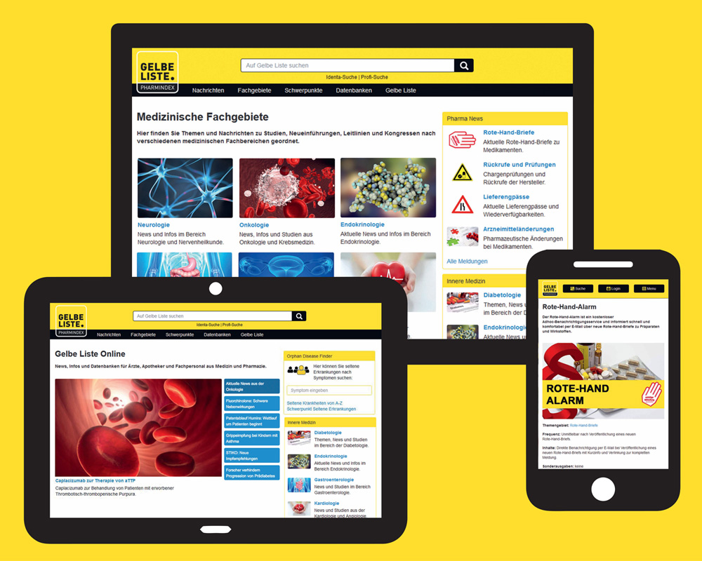 Auch dem Trend der zunehmenden Nutzung über mobile Endgeräte werde Rechnung getragen: Nach einer entsprechenden Optimierung der Gelben Liste Pharmindex Online im Vorjahr steht nun die Veröffentlichung der runderneuerten und weiterhin kostenlosen Gelbe Liste Pharmindex App unmittelbar bevor.