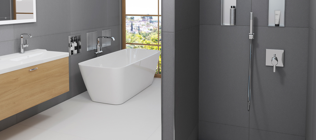 Immer mehr Badezimmer verfügen heute über schwellenlose Duschen, moderne Sanitärmöbel und eine ansprechende Innenarchitektur. Neben designorientierten Oberflächen halten zunehmend gestalterische Elemente wie Einschnitte oder Nischen Einzug. Mit BLANKE BAY-BOX bieten die Fliesenzubehörspezialisten der Blanke Systems GmbH aus Iserlohn eine oberflächenfertige Nischen-Schnelleinbau-Lösung, die technisch überzeugt und optisch beeindruckt.