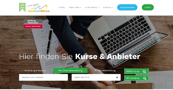 Die SEMINARBOERSE wurde von den Zwillingsbrüdern Walter und Günter Willems Ende der 90er Jahre gegründet, um einen digitalen Bildungs-Marktplatz zu schaffen, der alle Bildungsinteressierten zusammenführt. Ziel ist es die Transparenz über die unterschiedlichen Formen und Arten von Seminaren im deutschsprachigen Raum zu erhöhen und den Zugang zu geeigneten Angeboten zu erleichtern. Das Portal umfasst alle Bereiche der Bildung. Hier finden Sie Ausbildungen, Kurse, Studiengänge zu allen Themenfeldern der Weiterbildung und in allen ihren Arten – wie Tageskurse, Wochenendkurse, Online-Kurse und Fernlehrgänge etc. Aktuelle redaktionelle Hinweise zur Bildung finden Sie in unserem Bildungsratgeber und runden unser Angebot als Bildungsportal ab.