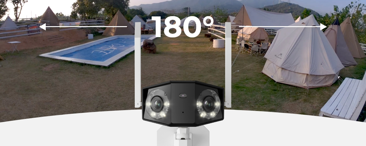 Reolink Duo 2 PoE und Reolink Duo 2 WiFi, aktualisiert von Reolink Duo PoE und Duo WiFi, können zwei Ansichten zu einem nahtlosen 180°-Panorama ohne überlappende Teile zusammenfügen und so eine echte Kombination von zwei Kameras realisieren: Zwei Kameras in einer für verdoppeltes Sichtfeld.