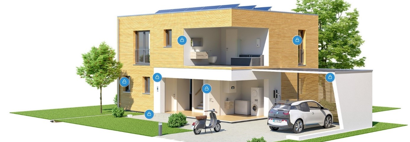 Durch eine intelligente Vernetzung der verschiedenen Anwendungen im Haus wie etwa Licht oder Rollläden wird Anwesenheit simuliert, auch wenn die Bewohner nicht da sind. Per App können sie außerdem prüfen, ob alle Fenster geschlossen sind und die Alarmanlage scharf ist.